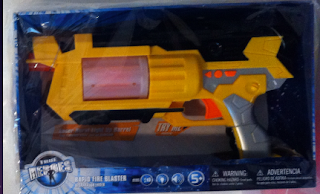 It basically, makes "Buzz Lightyear noises!" It's called a "fire blaster." The middle turns around, lights up, and makes Space Mountain sounding noises. OKAY, fine. NOW we're talking. A boy toy I can wrap my head around.
